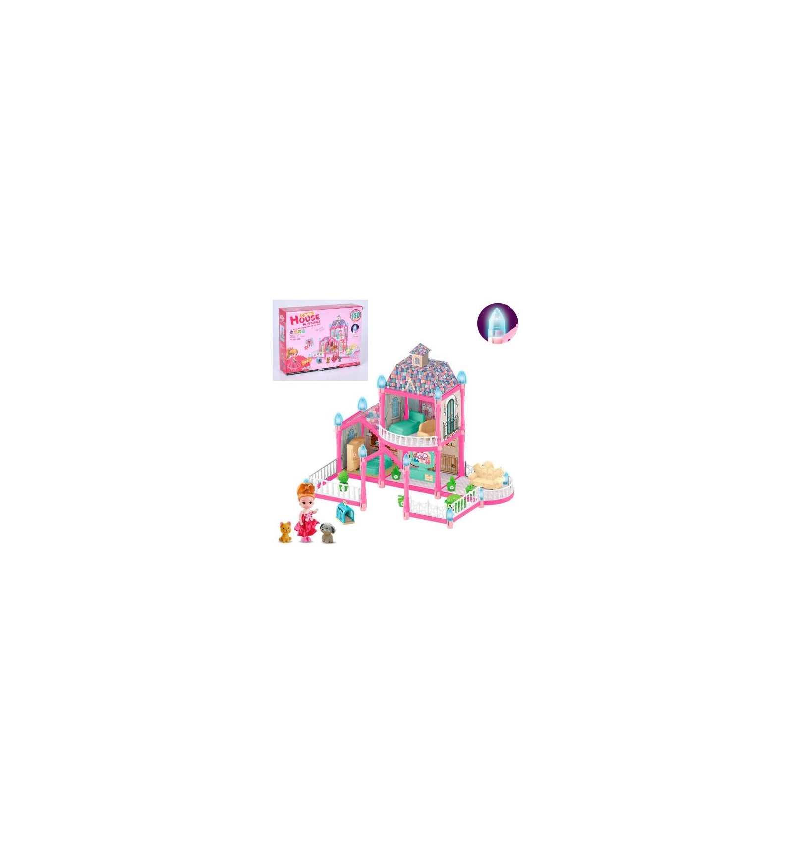 Будиночок 556-45 A (36шт) поверхи-2, 46-30-в41 см, світло, меблі, лялька 10см, тварини, будка, 120д ет, на батарейках (таб), в коробці, 30-23-8 см